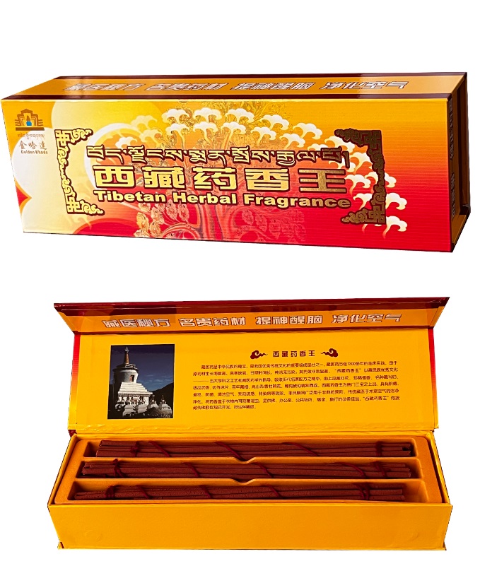 藏医药是中华民族的瑰宝,是我国优秀传统文化的重要组成部分之一,藏医药历经1300多年的临床实践,由于原药材生长海拔高,高寒缺氧,日照时间长,纯洁无污染,其药效非常显著。“西藏药香王”以藏民族优秀文化——五大学科之工艺和藏医药学为指导,吸取历代名医配方之精华,由珍稀檀香、沉香、优等冰片、红花、肉豆蔻、豆蔻、百年藏柏、高山烈香、杜鹃花等精制而成。西藏药香王具有浓郁的香气,其香味独特,既有木质的清香,又有花草的芬芳。这种香气具有舒缓神经、提神醒脑、净化空气、预防感冒等功效,因此被广泛用于空气净化、办公、公共场所、居家、旅行等的必备佳品。